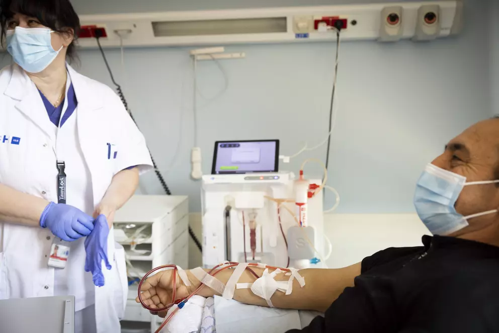 Pourquoi choisir l’H.U.B-Erasme pour une maladie rénale ? C’est une question légitime et la réponse est simple. À l’H.U.B-Erasme, nous disposons d’une véritable palette d’experts : une équipe jeune d’une quinzaine de spécialistes. Cette jeunesse est une force : nous sommes au fait des toutes dernières avancées en néphrologie clinique. Notre priorité absolue est de retarder au maximum l’évolution de la maladie rénale chronique pour éviter, autant que possible, le recours aux techniques d’épuration extra-rénale, qu’il s’agisse de la dialyse péritonéale ou de l’hémodialyse.